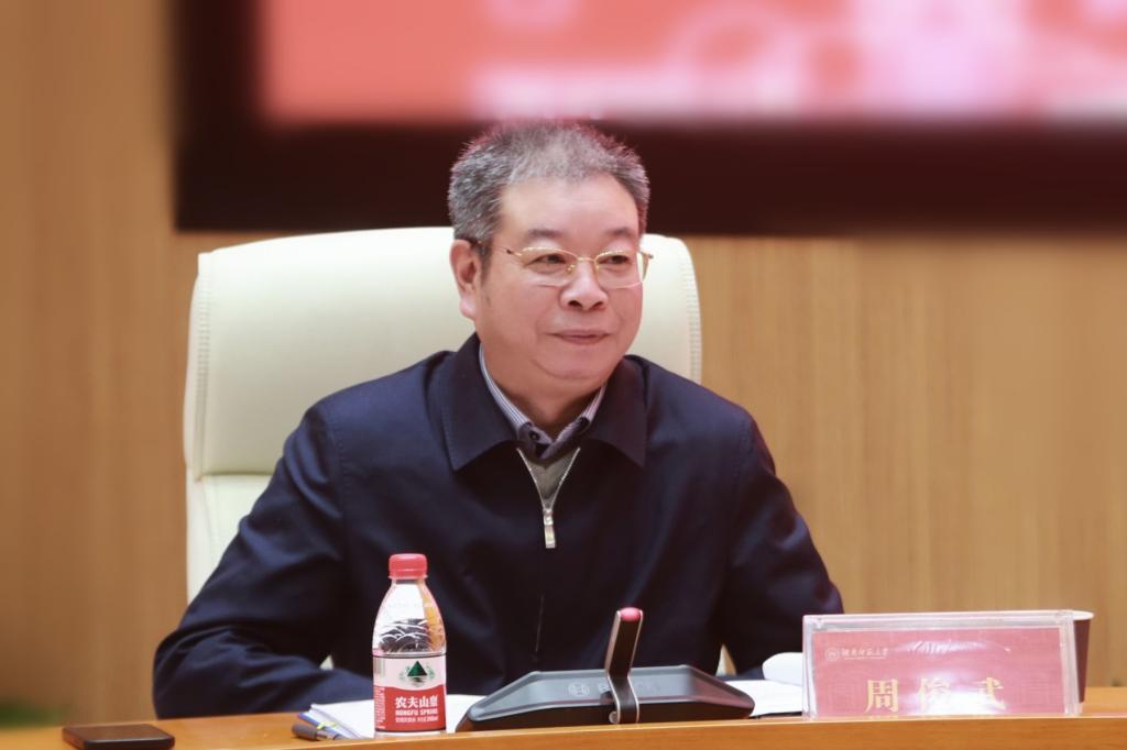 周俊武领学了《湖南省教育系统贯彻落实<党委(党组)意识形态工作责任制实施办法>的实施细则》和《湖南省高校网络意识形态责任制实施细则》。他强调,意识形态工作是党的一项极端重要的工作,要深刻理解把握新时代意识形态工作要求,强化责任意识,严格落实意识形态工作责任制和网络意识形态工作责任制,加强意识形态阵地建设和管理,有效防范和化解意识形态领域的风险;要牢牢把握意识形态工作主动权,壮大主流舆论宣传力量,唱响主旋律。