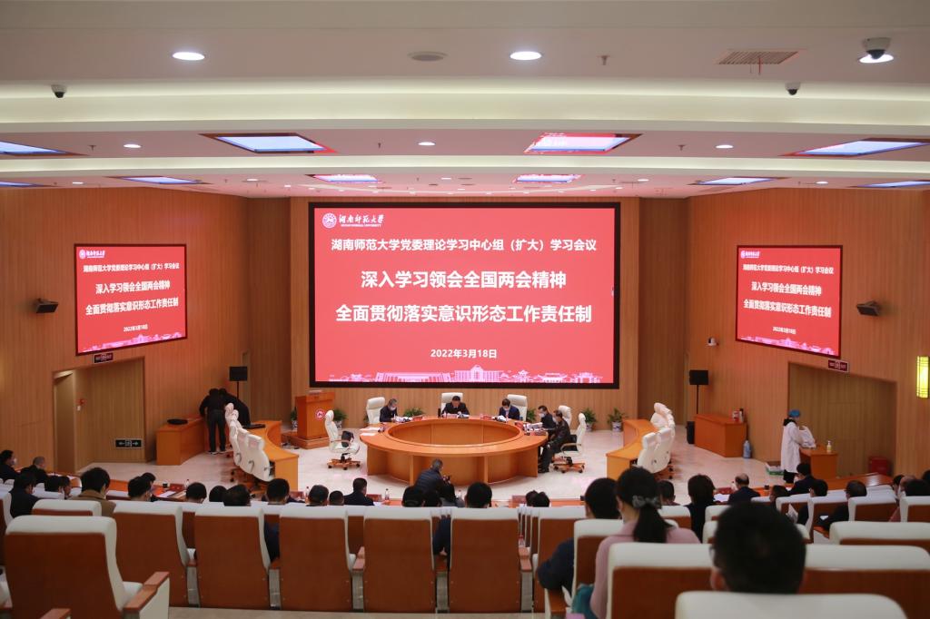 (记者 马铁泉 杜于蓝)3月18日上午,我校在图书馆新报告厅召开党委理论学习中心组(扩大)学习会议,传达学习2022年全国两会精神和贯彻落实意识形态工作责任制的有关文件精神。校党委书记蒋洪新主持会议,校长刘起军,校党委副书记周俊武,纪委书记姚春梅,副校长刘怀德、唐贤清、王辉、杨震、谢资清及各二级党组织书记、党群部门主要负责人参加学习。