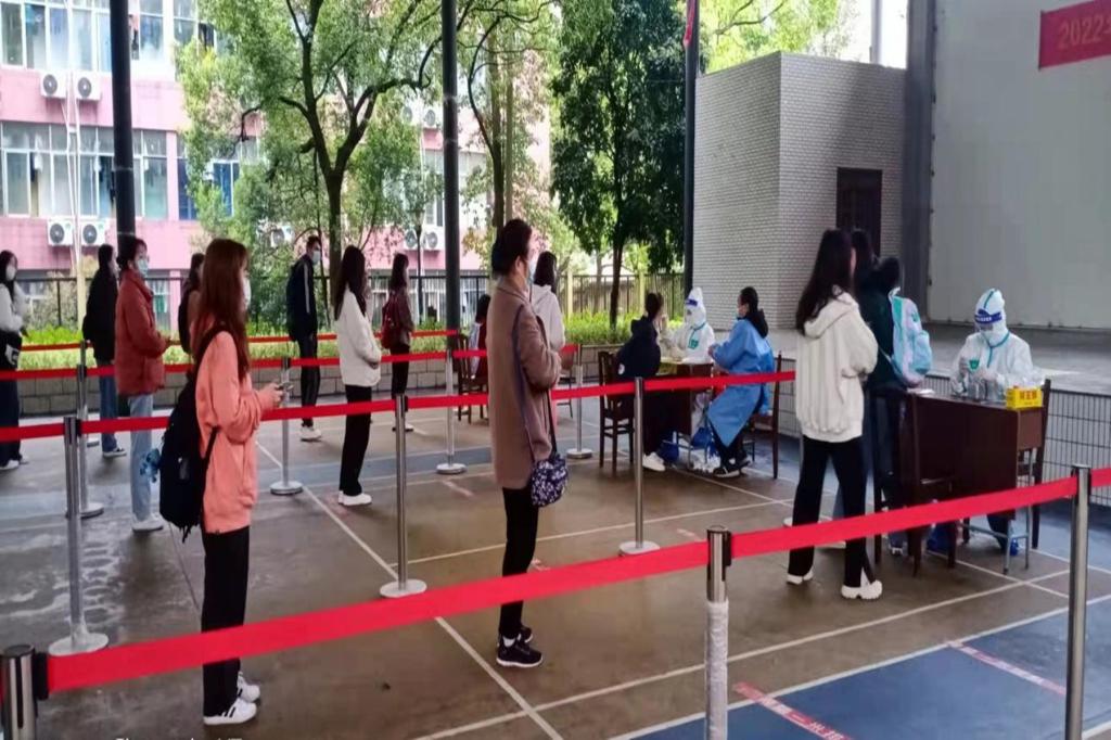 校区保卫、后勤、学工、教务、医务等各部门团结一致,互相配合。在校区综合管理中心主任林启明和校区保卫科肖立军的督促带领下,校区物业每天对宿舍、风雨操场、教学楼、核酸检测点、办公楼等公共场所进行消杀,全力做好后勤保障,给师生营造平安整洁的学习生活环境。校区积极配合芙蓉区防疫指挥部和街道社区组织师生员工进行多轮全员核酸检测,做到应检尽检,不漏一人,疫苗接种,做到应接尽接。辅导员深入学生宿舍,为学生及时排忧解难,并做好疫情期间学生的心理疏导工作。教务部门协调开展线上教学工作,落实在线教学质量监测。面对疫情大战大考,校区党组织和党员闻令而动,党员同志们纷纷主动请战,承担起核酸检测现场志愿者工作,始终坚持人民至上、生命至上,践行初心使命,彰显先锋本色,成为战疫一线的“主心骨”,充分发挥战斗堡垒作用和先锋模范作用,让党旗在疫情防控一线高高飘扬。校区各学院学子们也纷纷助力抗疫,积极投身疫情防控志愿服务活动中。在防疫站点值班,对核酸检测人员进行引导,检查健康码、行程码、场所码,督促来往同学随时佩戴好口罩等,彰显了师大分校区学子的责任担当。