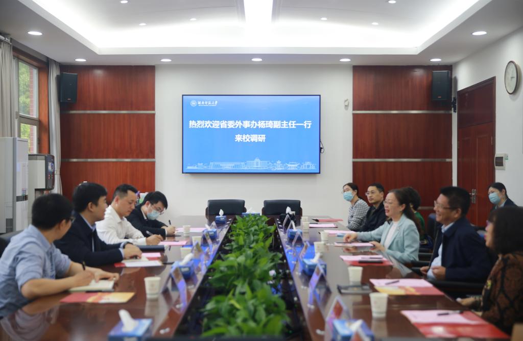 (记者 何思达 陈靓)5月12日下午,省委外事办副主任杨琦来校调研,副校长唐贤清接待了杨琦一行。会议由国际交流合作处副处长李苗主持。