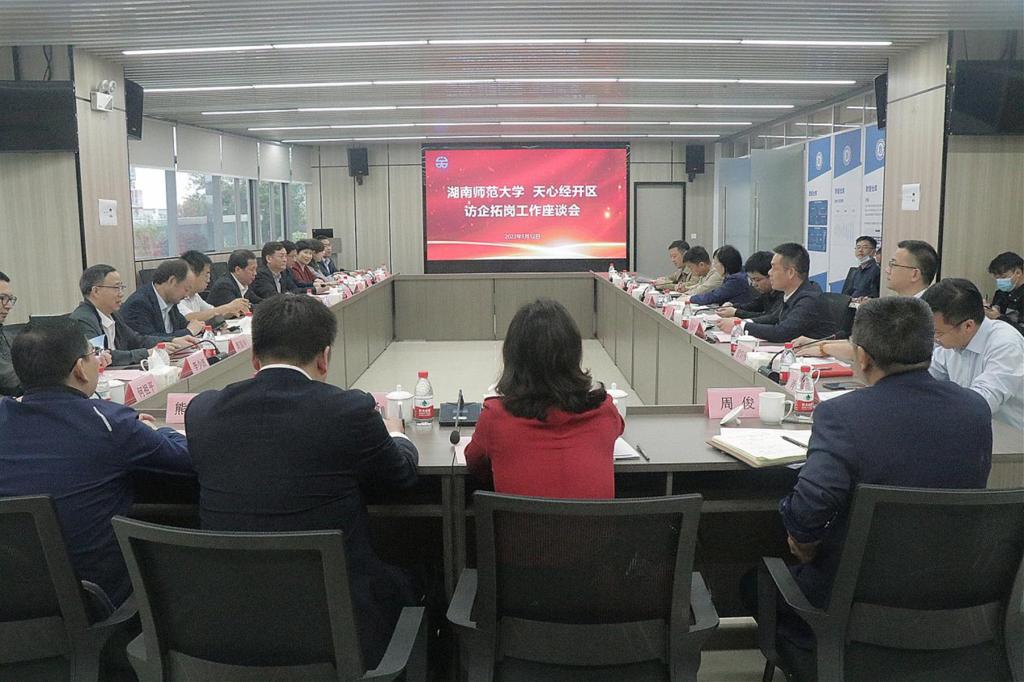 考察结束后,双方召开工作座谈会。曾红鹰、陈宇及相关园区负责人分别介绍了园区建设和相关产业发展情况,并提出了与我校加强校地合作、校企合作的强烈愿望和具体意向。