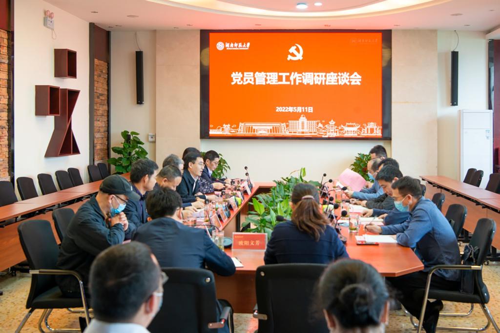 (供稿 党委组织部)5月11日上午,省委组织部党员管理处处长曾国荃一行来我校调研党员管理工作,省委教育工委组织部部长黄星亮等陪同调研。我校校长刘起军会见了调研组一行,校党委副书记周俊武出席了调研座谈会并致辞。调研座谈会在教育科学学院举行,会议由校党委委员、组织部部长沈又红主持。
