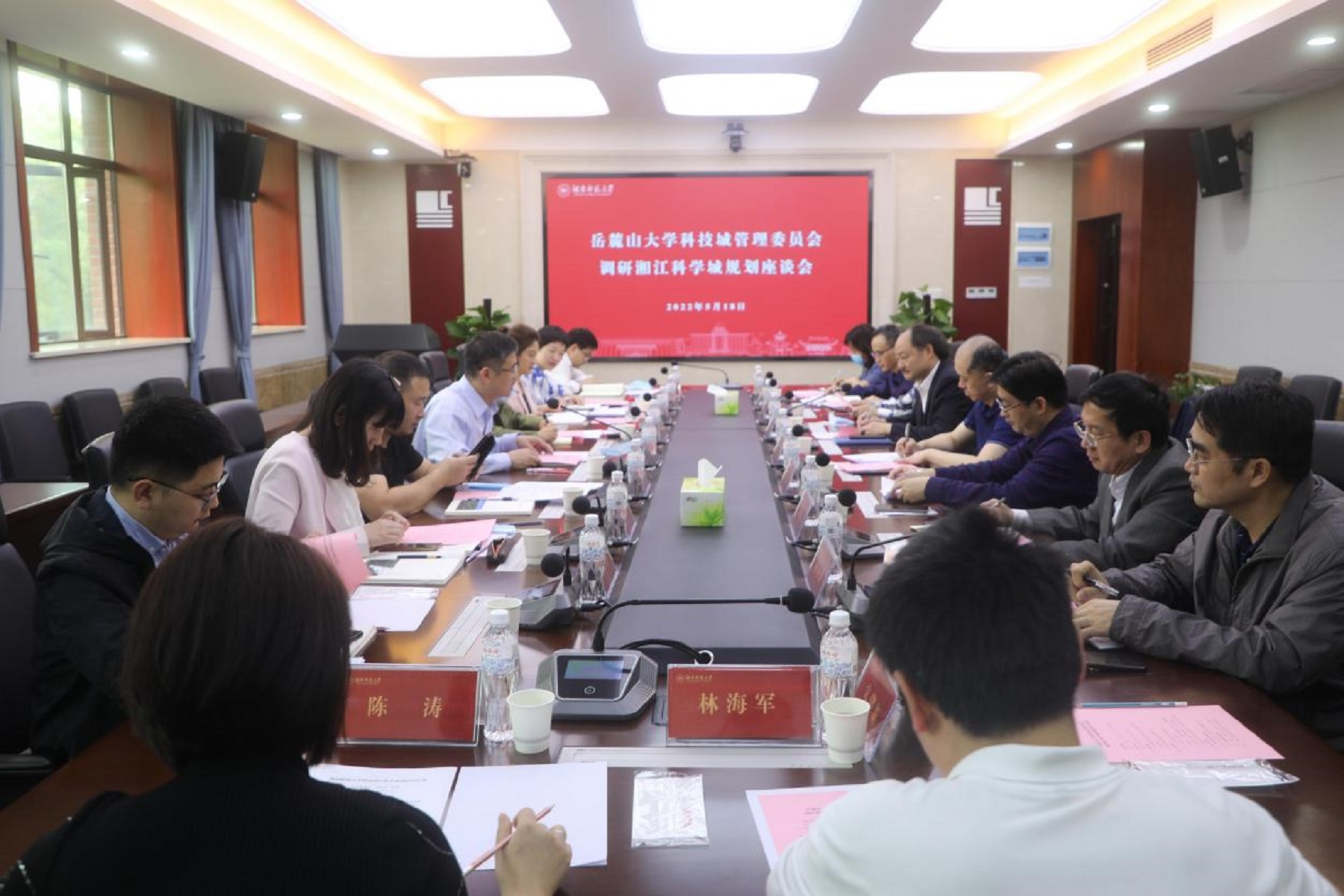 座谈会上,我校相关院系负责人就主要产业项目进行了介绍。湘江新区管委会、大科城管委会以及我校相关负责人参加调研活动。