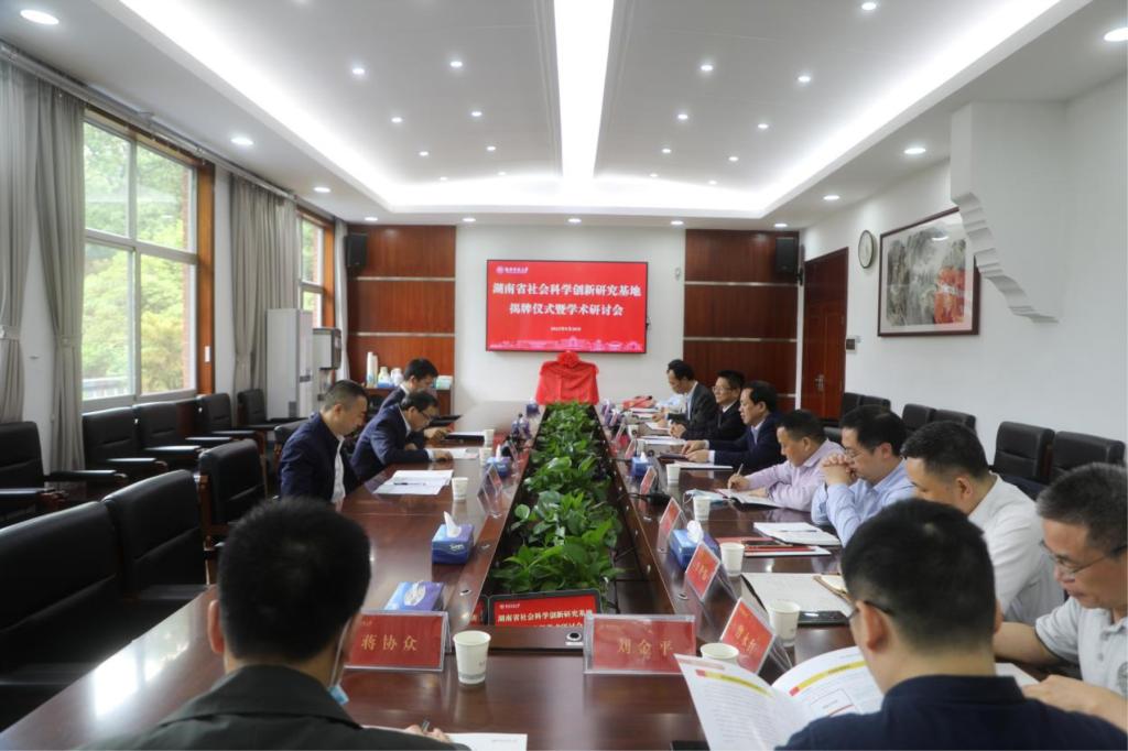 戴树源、唐贤清共同为湖南省社会科学创新研究基地揭牌。