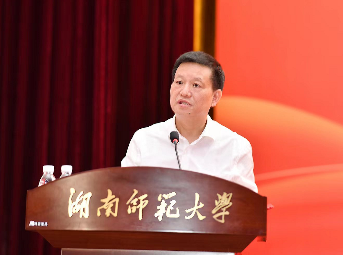 蒋洪新为毕业生党员主讲了《不忘初心,以青春之名继续奋斗》主题党课。他同毕业生党员一起深情回忆了遇见师大的奇妙缘分和美好时光,用三个“准确把握”寄语大家,希望毕业生党员同学准确把握时代大势,做心怀家国的“明白人”;准确把握前进航向,做脚踏实地的“实干家”;准确把握职责使命,做理想坚定的“奋斗者”。他勉励同学们,要在增强忧患意识、树立战略自信、把握历史主动的基础上,服务国家战略需求,做“大”选择;善于发挥自身特长,做“对”选择;主动扎根基层一线,做“实”选择。蒋洪新说,理想再美好,也离不开艰苦奋斗,他要求大家在奋斗的过程中要永葆理想信念、永葆谦虚谨慎、永葆拼搏本色。在讲课中,他结合党史学习教育,引用了大量党史、校史上先进人物善察大势、勇树理想、不懈奋斗的生动事例,内容丰富、深入浅出、金句不断,为广大毕业生党员上了一堂突显初心使命的党课、视野开阔的形势政策课、内涵深刻的思政课,对毕业生党员坚定理想信念、坚持砥砺奋斗,在未来的人生路上不断行稳致远有着极强的指导意义。