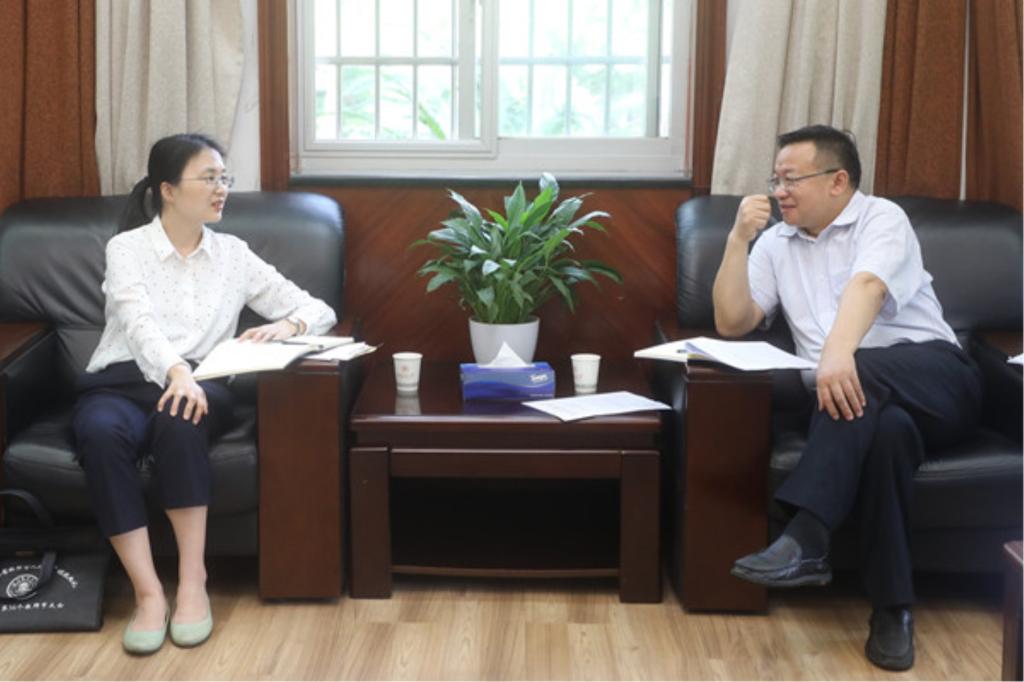 (供稿 发展规划与学科建设处)6月6日下午,湖南省教育厅发展规划处副处长冯臻,财务建设处副处长温佐望到访我校,就省政协委员、我校副校长刘怀德在湖南省政协第十二届委员会第五次会议上提出的第0565号提案《关于集中提高湖南省高等教育办学条件的建议》作出答复。