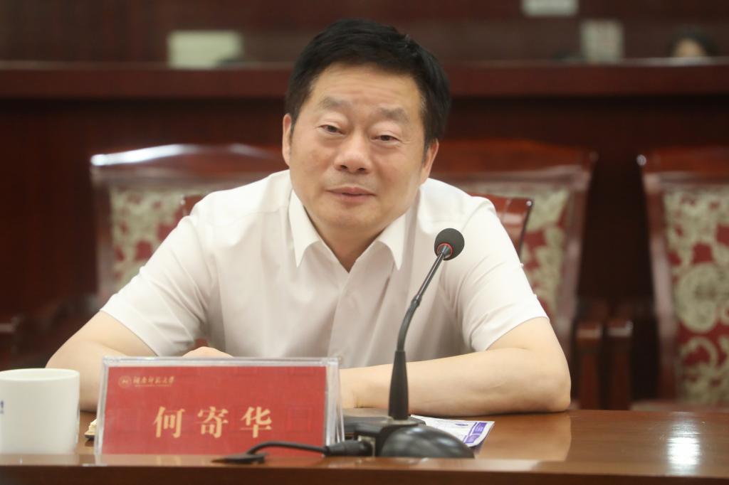 (供稿 党委统战部)6月22日下午,省政协常委、民盟湖南省委会主委、省地质院院长何寄华一行来校走访调研。调研座谈会在国际学术中心四楼会议室举行,校党委副书记周俊武出席座谈会。