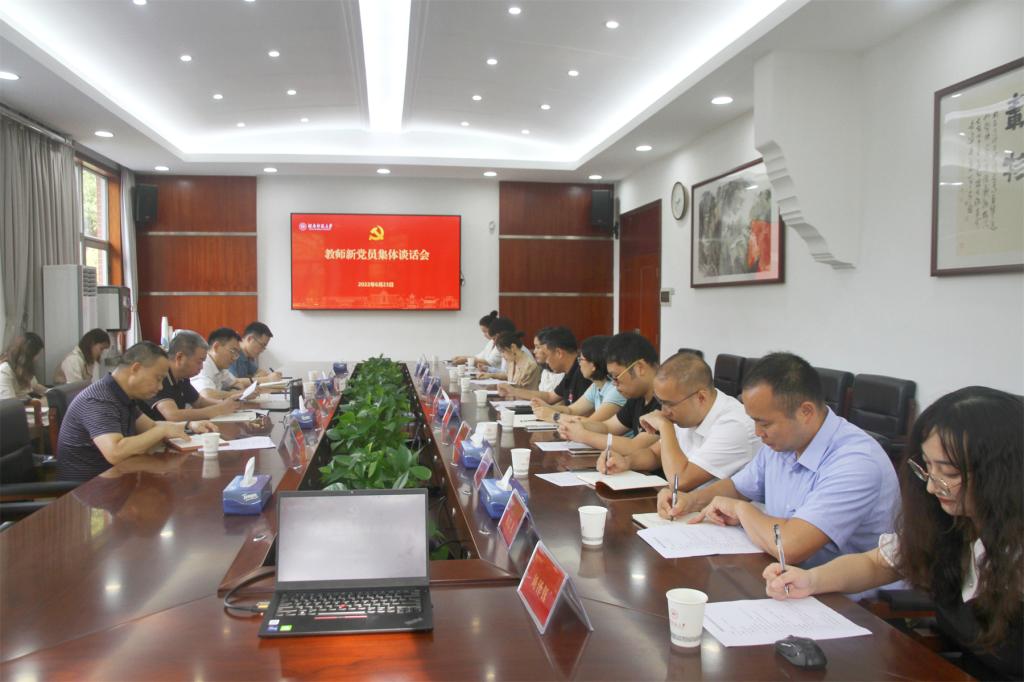 (记者 李欣茹 楼语畅)6月23日上午,我校于校办公楼二会议室召开教师新党员集体谈话会。校党委副书记周俊武出席会议,校党校常务副校长兼党委组织部副部长袁道香主持会议。