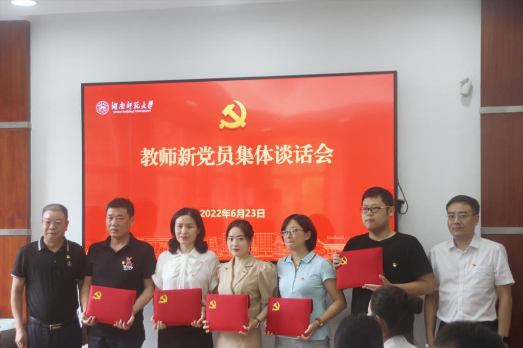 教师新党员代表、工程与设计学院艺术设计系党支部党员、世承人才、湖南省创新创业团队带头人孙舜尧,教师新党员代表、音乐学院第一党支部党员、湖南省“海外青年百人”彭琳琳分别发言。