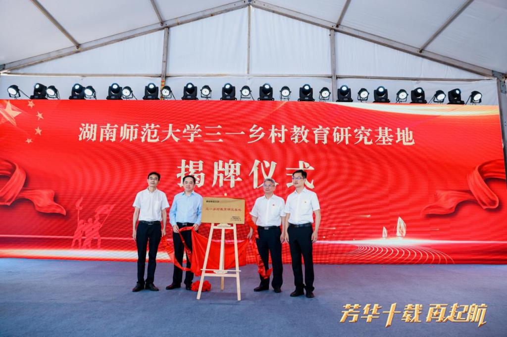 蒋洪新在致辞中深情地说,我校与三一集团同根同脉,双方携手重回故土,合作共建涟源三一学校和乡村教育研究基地,在新时代再续情缘和华章,何其幸也!他现场撰联:为国之重者,稳如泰山,敢问乾坤壮志;做文化先进,根自涟源,应有沧海情怀。他强调,心怀“国之大者”,服务重大战略需求,是大家共同的坚守与追求。我校与娄底涟源、三一集团共同合作,不仅仅是办学兴教,也是服务国家乡村振兴重大战略。学校在未来将为乡村教育振兴、教育振兴乡村贡献更多湖南师大的智慧与力量。