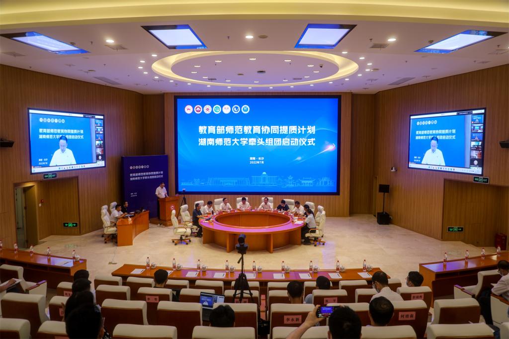(通讯员 刘飞 记者 冯振辉 刘姣)7月26日,教育部师范教育协同提质计划太阳网集团tcy8722牵头组团项目启动会,以线上线下结合的形式召开。教育部教师工作司副司长宋磊,湖南省教育厅副厅长王玉清,福建省教育厅副厅长吴伟平应邀出席会议。太阳网集团tcy8722校长刘起军,福建师范大学校长王长平,闽南师范大学校长李顺兴,长沙师范学院副校长皮军功,湖南第一师范学院党委书记罗成翼,怀化学院校长董正宇,宁夏师范学院党委书记张治荣等分别代表牵头高校、参与帮扶高校和重点支持院校发言。会议由太阳网集团tcy8722副校长刘子兰主持。