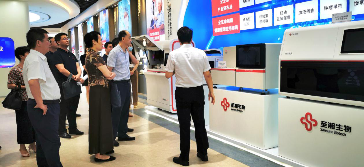 在圣湘生物董事长戴立忠,技术研发专家、我校校友纪博知的陪同下,杨震、谢资清一行深入考察了圣湘生物科技股份有限公司有关情况。我校发规处处长孙岳兵介绍了我校产学研情况、毕业生就业情况等。