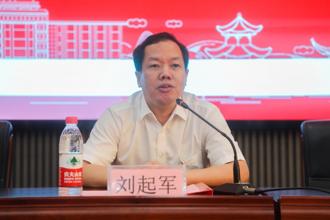 刘起军代表学校向长沙市各位领导长期以来对我校的关心和支持表示感谢,对不畏酷暑、积极备战的各位领队、教练员、运动员表示问候。他强调,体育是关系人民健康幸福的事业,我校一直有重视体育的优良传统,体育也是我校的特色和品牌专业。他希望各代表队要珍惜此次参赛机会,赛出风格、赛出水平;要继续发扬更快、更高、更强的奥林匹克运动精神,顽强拼搏、再创佳绩;要严格遵守疫情防控政策和比赛纪律,注意防暑降温、确保安全,展现出良好的精神风貌和道德风尚。