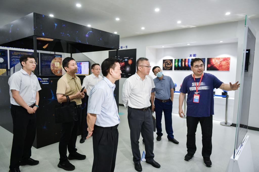 任友群一行实地考察了我校世界一流建设学科展厅以及校天文馆,详细了解了学校世界一流建设学科历史、人才培养特色以及科研建设成果等。