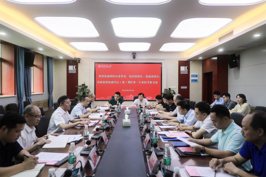 (记者 马铁泉 刘茵 冯振辉)9月2日下午,邵阳市委常委、组织部部长、统战部部长,市政协党组副书记(兼)龚红果一行来我校调研并举行座谈会。校党委书记蒋洪新出席座谈会。座谈会由副校长杨震主持。