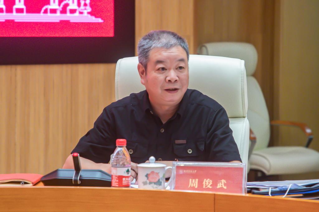 校党委副书记周俊武围绕深入学习贯彻习近平总书记在省部级主要领导干部专题研讨班上的重要讲话精神作中心发言。他认为,要深刻理解把握习近平总书记重要讲话的精神实质,切实做到“五个结合”——与迎接党的二十大、与学习《习近平谈治国理政》第四卷、与推动党史学习教育常态化长效化、与推动学校高质量发展以及维护校园安全稳定等结合起来,融会贯通、一体并用。他强调,各二级党组织务必压紧压实意识形态工作责任制,高度警惕防范化解各类风险隐患,加强分析研判,确保校园稳定和政治安全。随后,他领学了《让群众过上好日子—习近平正定足迹》等四部图书,强调要深刻把握四部图书的核心要义、精神实质、丰富内涵和实践要求,深切体悟其中蕴含的坚定理想信念、强烈历史担当、科学系统思维和深厚为民情怀。