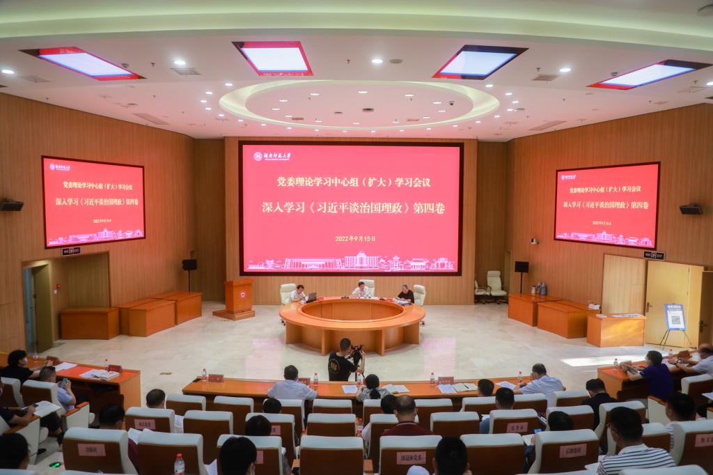 (记者 马铁泉 刘静 苗鑫雨)9月15日下午,校党委理论学习中心组在图书馆新报告厅召开2022年度第七次学习会议,深入学习《习近平谈治国理政》第四卷和习近平总书记在省部级主要领导干部“学习习近平总书记重要讲话精神,迎接党的二十大”专题研讨班上的重要讲话精神。湖南省委宣传部理论处处长陈瑞来应邀作专题辅导报告。校党委书记蒋洪新主持学习会。