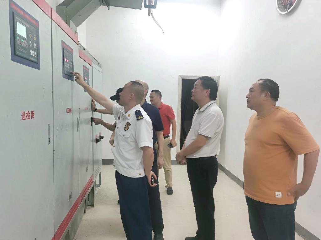 王辉、李振一行查看了综合大楼的监控指挥中心、消控设备、消防水泵房、学生宿舍等,并对消防设施的运行情况、楼栋封闭安防设施进行了重点检查。