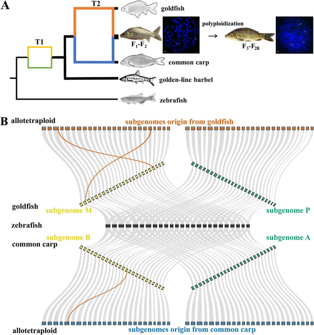 远缘杂交形成可育品系过程中基因组结构特性和基因表达特性是非常值得系统研究的内容。对人工创制的异源四倍体鱼的基因组等生物学特性进行研究,在鱼类育种及探索鱼类演化规律等方面具有重要意义。