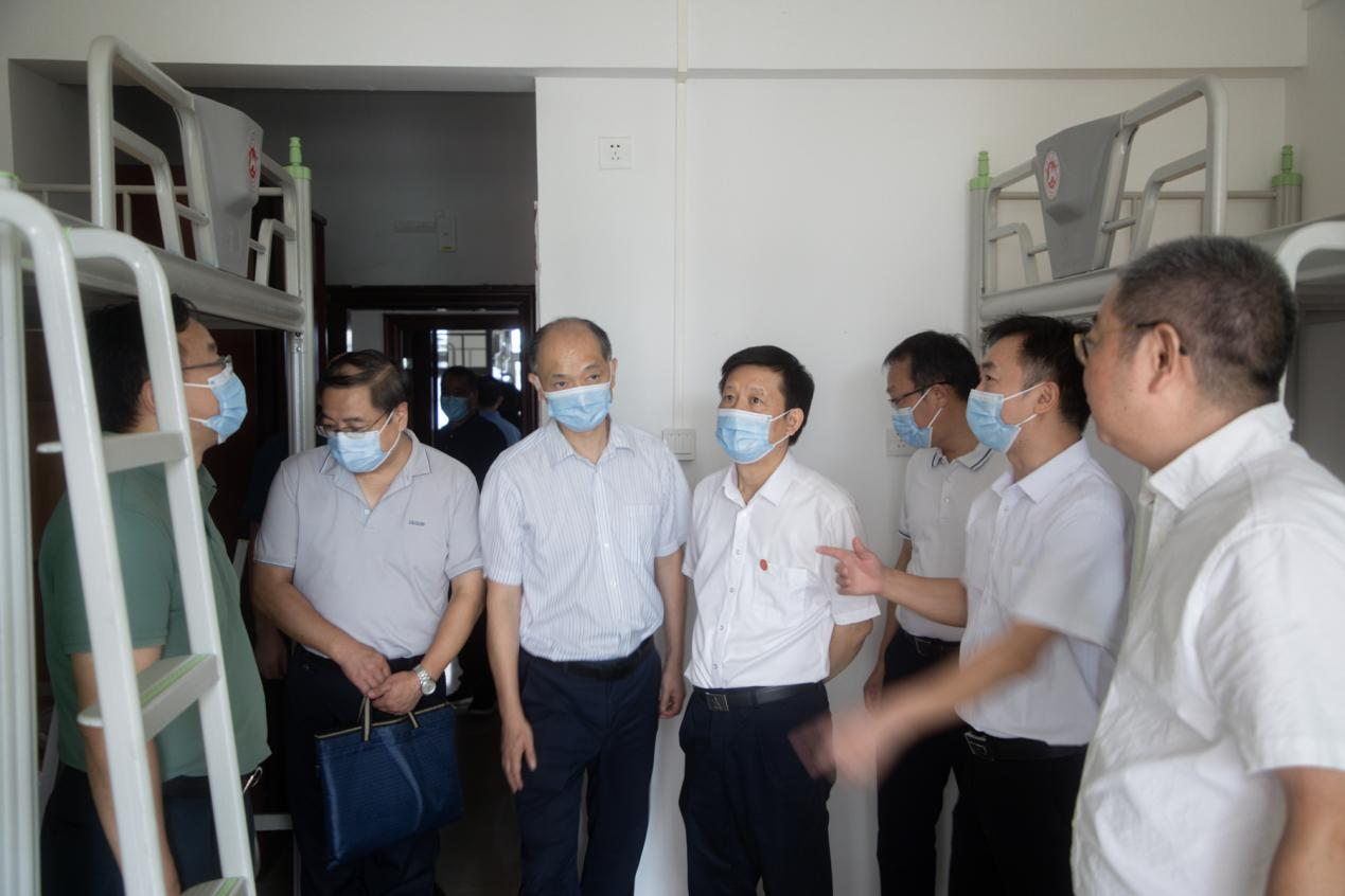 蒋洪新实地察看了各学生宿舍的基础设施、物资配备、安全卫生等情况,听取了相关负责人的工作汇报。
