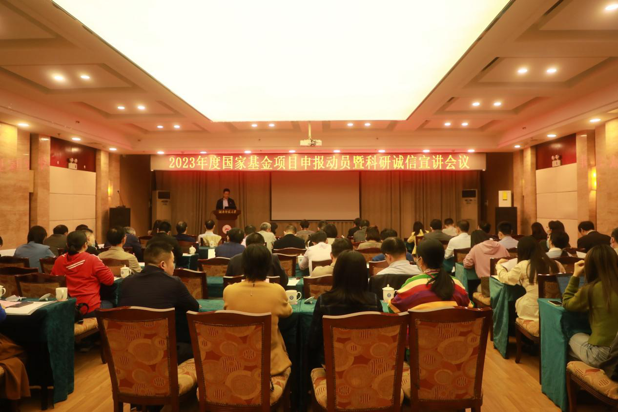 (记者 易可馨 刘曦妍 李影)11月1日下午,我校于红楼五楼会议室召开2023年度国家基金项目申报暨科研诚信宣讲会议。副校长谢资清出席会议。社会科学处副处长阳旺主持此次会议。