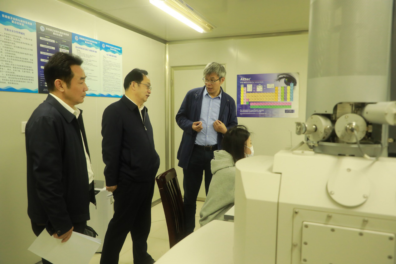 鲁先华一行在物理与电子科学学院院长唐东升、地理科学学院副院长李忠武等人的引导下先后参观了量子楼与地理科学学院的部分实验室,深入了解洞庭湖沉积有机碳来源对土壤侵蚀的响应及土地利用优化调控项目(获2019年国家区域创新发展联合基金资助)、电化学制氢和用氢关键催化材料与器材项目(获2021年省基础研究类“揭榜挂帅”资助)的研究进展和科研成果。