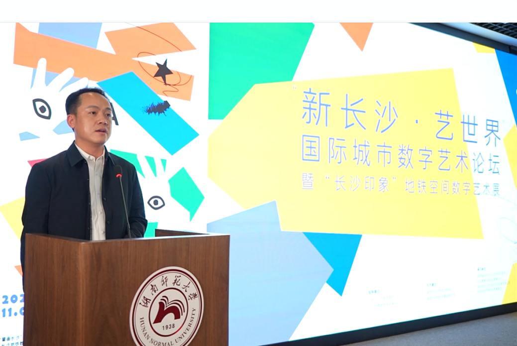 (供稿 美术学院)11月5日,由中共长沙市委外宣办、长沙市媒体艺术发展中心指导,我校美术学院、湖南天闻地铁传媒有限公司主办的“新长沙·艺世界——国际城市数字艺术论坛暨‘长沙印象’地铁空间数字艺术展”开幕式在我校美术学院举行。中共长沙市委宣传部副部长罗小确、我校副校长谢资清出席活动。