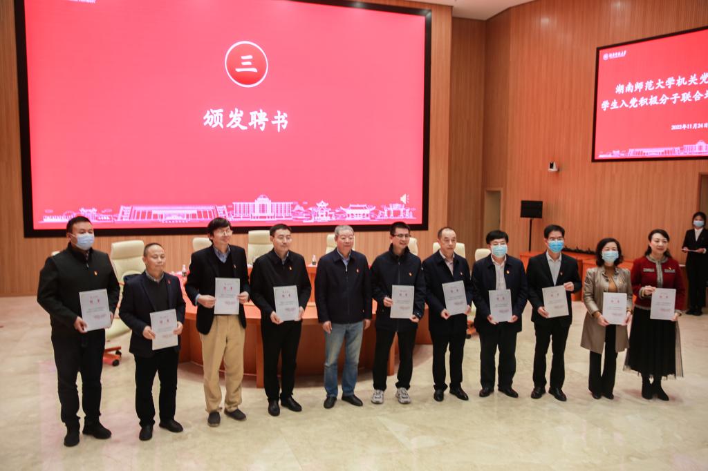 出席领导分别为学生入党积极分子培养联系人颁发聘书。