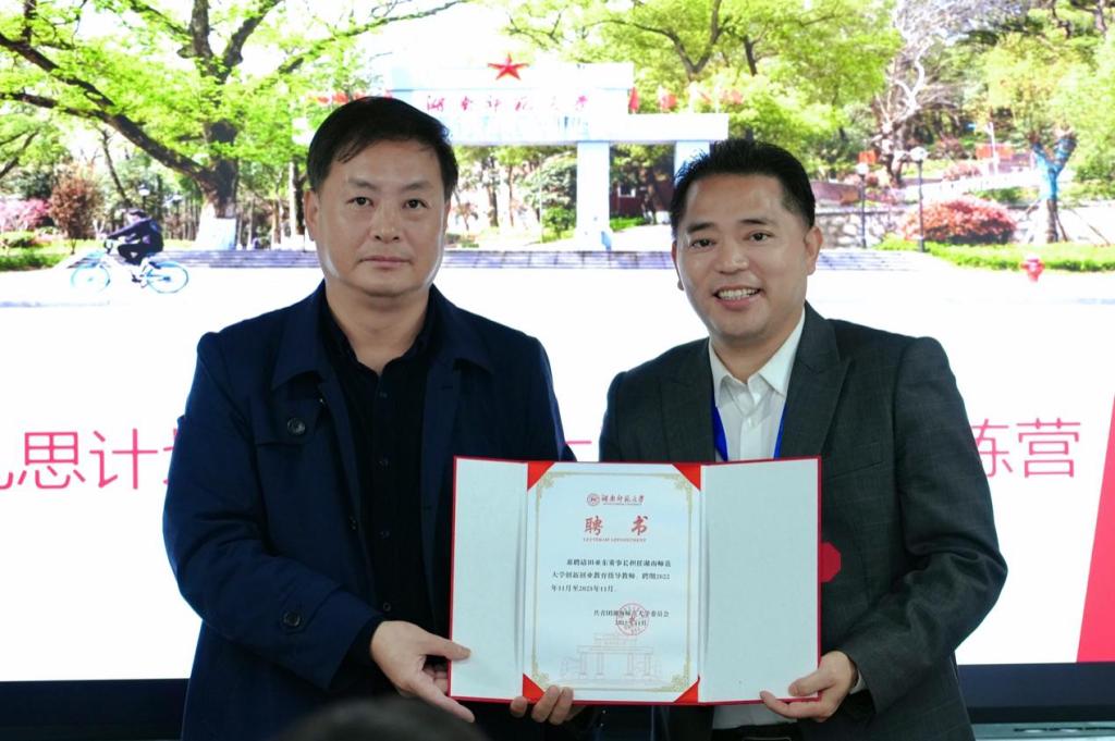 开营仪式上,王辉向田亚东颁发“太阳网集团tcy8722创新创业教育指导教师”聘书。日前,我校公共管理学院院长毛新志代表学院与考德上教育集团签署校企合作协议,以校企合作推动实务能力共建,促进专业高素质、应用型人才培养。
