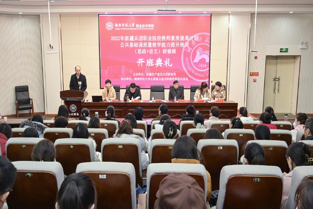 新疆生产建设兵团教科院、我校相关负责人,思想政治、语文公共基础课教学能力提升研修班50名学员参加开班典礼。