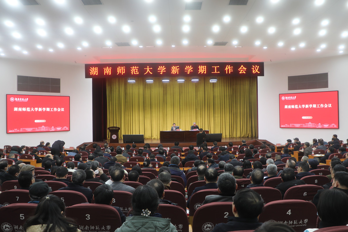 蒋洪新对新学期的学校事业发展提出了五点要求:一是把牢正确办学方向,高质量推进党的建设、立德树人根本任务和党风廉政建设,为党育人、为国育才。二是夯实学科基础,高水平推进双一流中期检查、高水平学科建设、标志性平台成果建设,紧密对接服务重大战略,为国家和地区经济社会发展贡献力量。三是深化数字化转型,高标准推进智慧师大建设,为教育教学、学校治理赋能助力,以数字化和大数据进一步支撑学科发展,以“智慧师大”助力建设“幸福师大”。四是坚持人才强校战略,高站位优化体制机制、评价管理,有序推进内设机构调整,理顺“人”“岗”“事”关系,激发学校办学活力。五是优化内部管理,高要求落实“乙类乙管”下疫情防控各项举措,全方位优化校内外环境治理和文化建设,积极营造良好的育人环境和氛围。