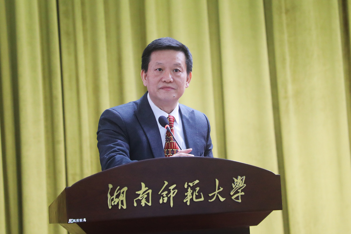 蒋洪新向全校师生致以新学期的美好祝福,对全校师生在过去一年的担当付出、接续奋斗表示衷心感谢,并从五个方面总结了2022年学校各方面工作取得的成绩:一是事业发展实现新跨越。学校党委明确把迎接、宣传、贯彻党的二十大作为工作主线,牢牢把握社会主义办学方向。学校各项事业取得长足进步,获得了省委书记、省人大常委会主任张庆伟同志等省领导的关心厚爱和高度认可。二是学科建设迈出新步伐。学校取得“双一流”建设和学科建设的双丰收,外国语言文学再次入选“双一流”建设学科;哲学、生物学入选我省“世界一流培育学科”,多个学科进入ESI全球前1%,并实现学科评估历史性突破。三是立德树人取得新成效。学校喜获“全国五一劳动奖状”,师生在各类学科竞赛中获国家级奖项100余项,连续两年获评湖南省最美思政课教师、最美辅导员和最美大学生称号。四是科研服务实现新提升。学校党委坚定实施人才强校战略,全年引进大量卓越人才,国家社科基金和国家自科基金均实现重大突破。五是服务师生展现新作为。学校顺利推进多项建设工作,师生幸福感、获得感进一步增强。