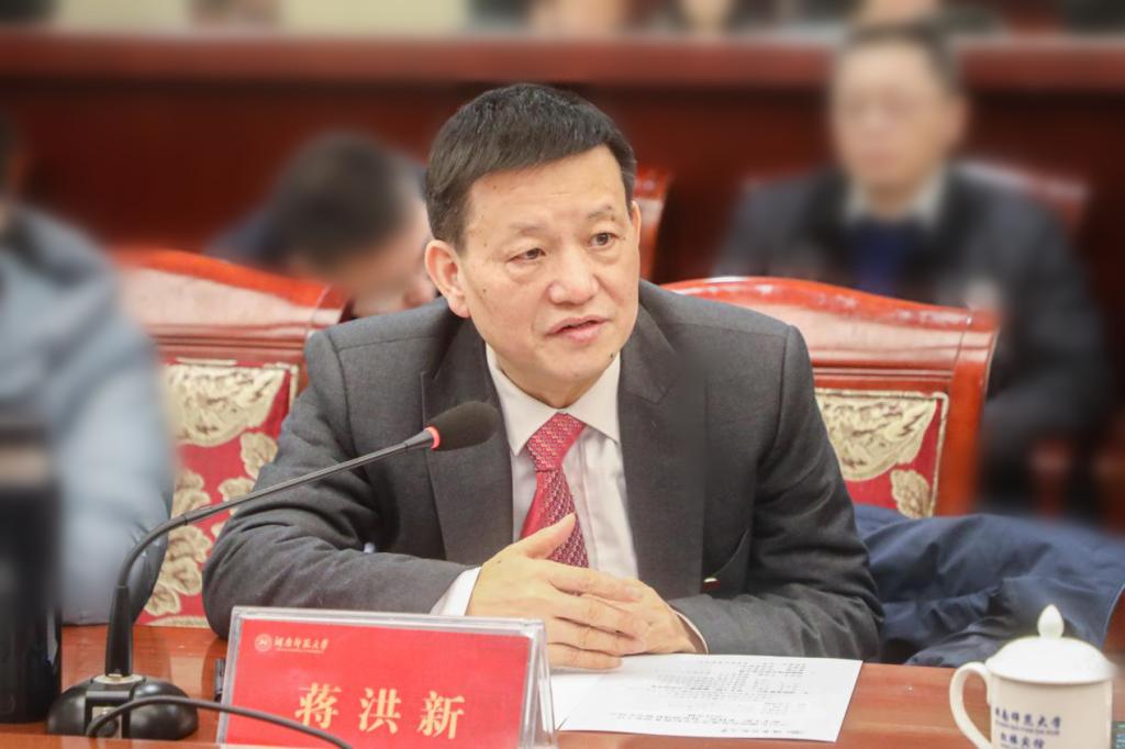 蒋洪新简要介绍了我校的办学历史、发展现状、学科建设等基本情况。他强调,我校始终秉承三个理念办学建校:一是坚持党的领导,走社会主义正确办学方向;二是注重师资强校,深入实施人才强校战略;三是打造共同体建校新模式,凝聚多方资源力量。他表示,我校推出的就业创业保障措施被人民日报等媒体报道,教学质量系统有保障,就业工作拥有良好基础,毕业生就业有高度自豪感。