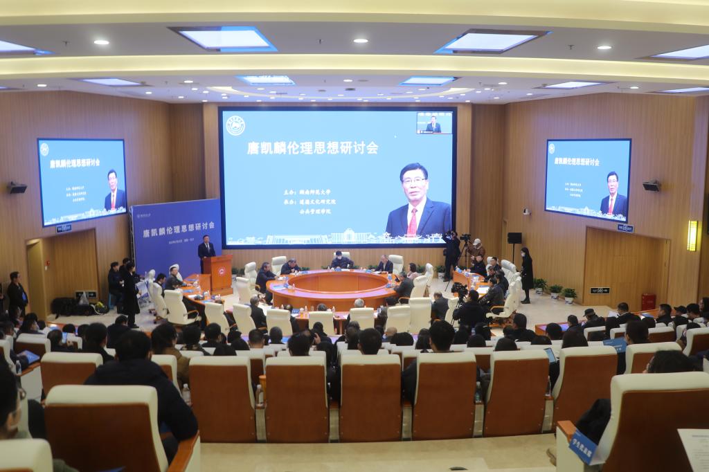 (伦理学所)3月25日,“唐凯麟伦理思想研讨会”在我校隆重举行,会议主要探讨唐凯麟伦理思想的精神魅力、独特价值和突出贡献,并借此追思唐先生高尚的治学品格和人格魅力。湖南省政府原副省长唐之享,中国伦理学会会长孙春晨,中国伦理学会原会长、清华大学万俊人,我校党委副书记周俊武、副校长刘怀德以及唐凯麟先生的亲属出席了开幕式并致辞。