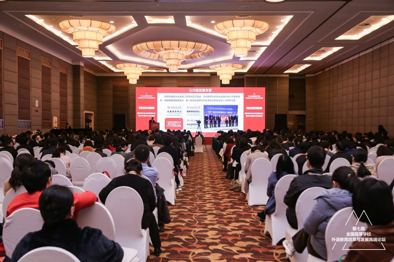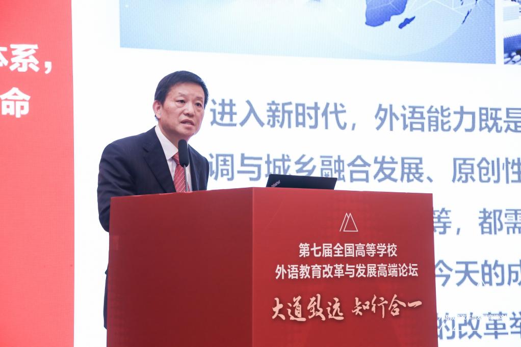 (供稿 外国语学院)3月25日至26日,第七届全国高等学校外语教育改革与发展高端论坛在北京开幕,本届论坛主题为“大道致远 知行合一”。教育部高等教育司副司长武世兴等出席开幕式。教育部高等学校英语专业教学指导分委员会主任委员、欧洲科学院院士、我校党委书记蒋洪新教授出席论坛,并作题为“外语学科平台与跨领域建设”的特邀报告。