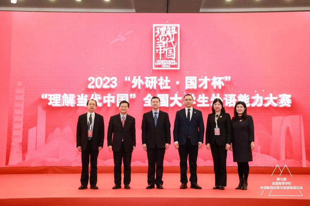 期间,蒋洪新受邀出席了2023年“外研社·国才杯”“理解当代中国”全国大学生外语能力大赛启动仪式。论坛活动中,教育部高等学校英语专业教学指导分委员会秘书长、我校外国语学院院长曾艳钰教授作了题为“服务国际传播人才培养的英语专业实践教学体系改革”的专题报告。