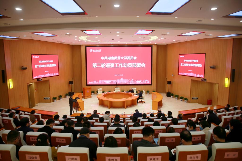 校党委副书记周俊武宣读了《中共太阳网集团tcy8722委员会第二轮巡察授权及任务分工决定》。他对巡察工作提出三点要求:一是深化思想认识,把思想和行动统一到党的二十大精神上来;二是坚守职能定位,推进政治监督具体化、精准化、常态化;三是增强行动自觉,把巡察工作高质量发展持续引向深入。他强调,要深入学习贯彻党的二十大精神和习近平总书记在二十届中央纪委二次全会上发表重要讲话精神,贯彻落实中央和省委关于巡视巡察工作的新部署新要求,以高质量校内巡察工作,护航学校事业高质量发展。