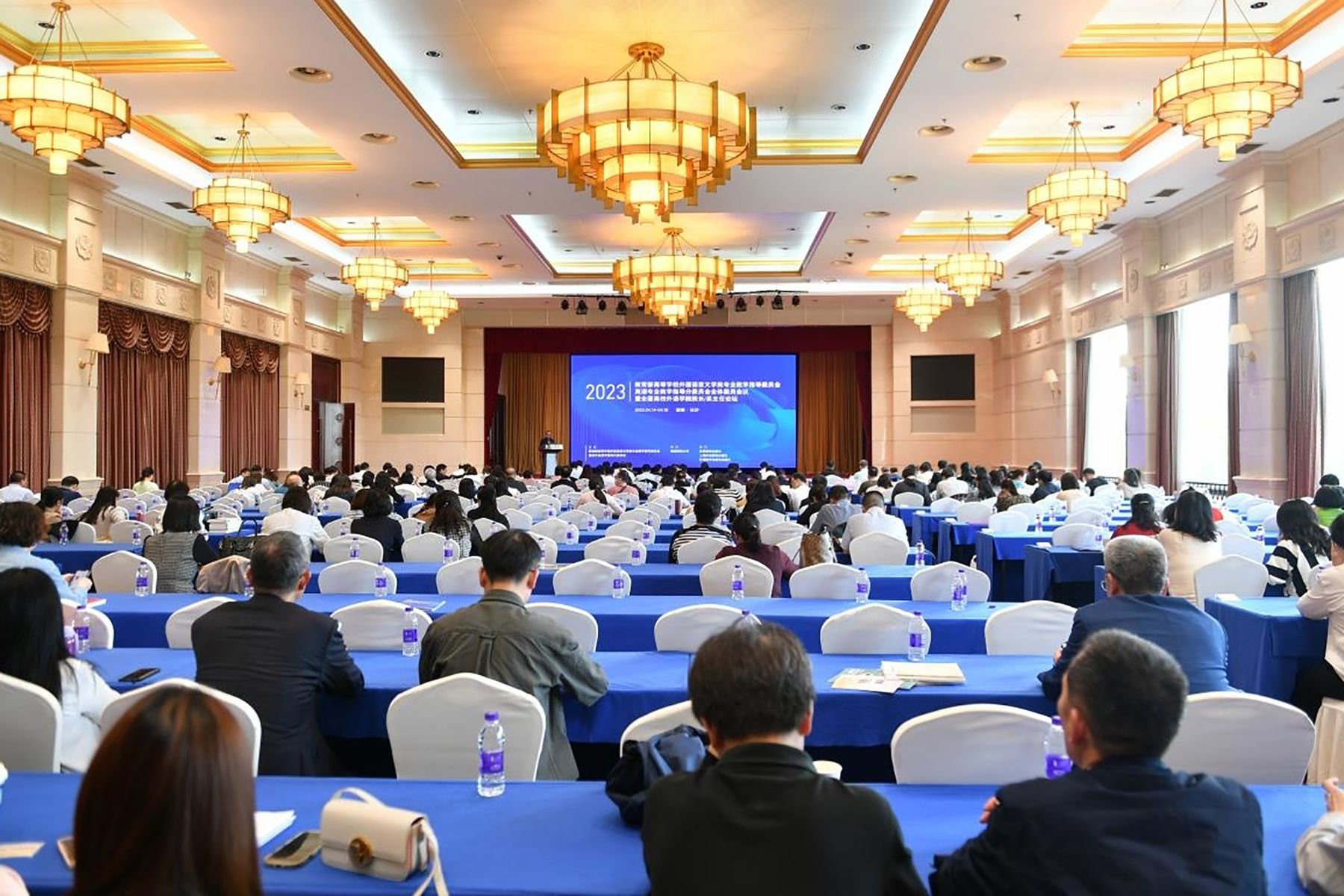 据悉,本次会议由教育部英语专业教学指导分委员会主办,我校承办,高等教育出版社、上海外语教育出版社、外语教学与研究出版社协办。教育部英语专业教学指导分委员会全体委员、国内知名专家、上百所高校及相关出版社负责人共计400余人参加会议。