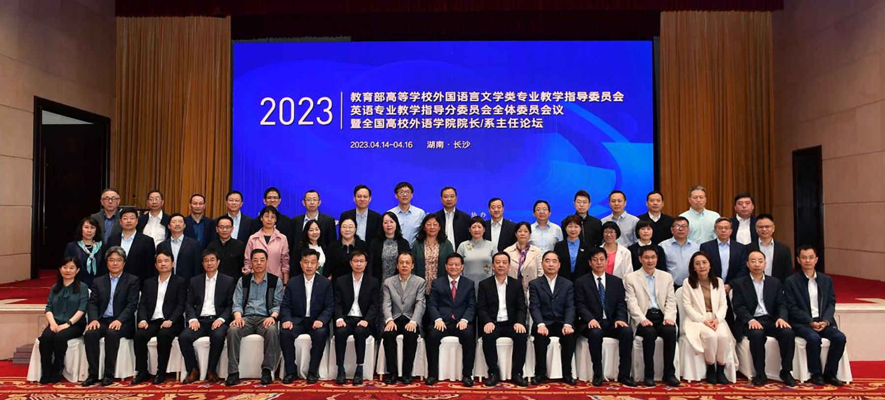 (通讯员 黄英豪)4月15日,教育部高等学校外国语言文学类专业教学指导委员会英语专业教学指导分委员会全体委员会议暨全国高校外语学院院长/系主任论坛在长沙开幕。高等教育出版社总编辑谭方正,湖南省教育厅高教处处长刘奇军,教育部英语专业教学指导分委员会主任委员、我校党委书记蒋洪新教授等出席会议并致辞。