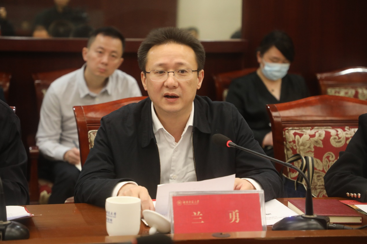 蒋洪新代表学校作表态发言。他对参会领导和各高校代表表示热烈欢迎,并简要介绍了我校近年来的改革发展情况。他表示,我校将在巡回指导组的指导下,精心谋划,尽早拟定工作方案、建立领导小组,有序推进各项工作。他表示,我校一定坚决贯彻落实巡回指导组的指示要求,全力配合做好联络服务和保障工作。