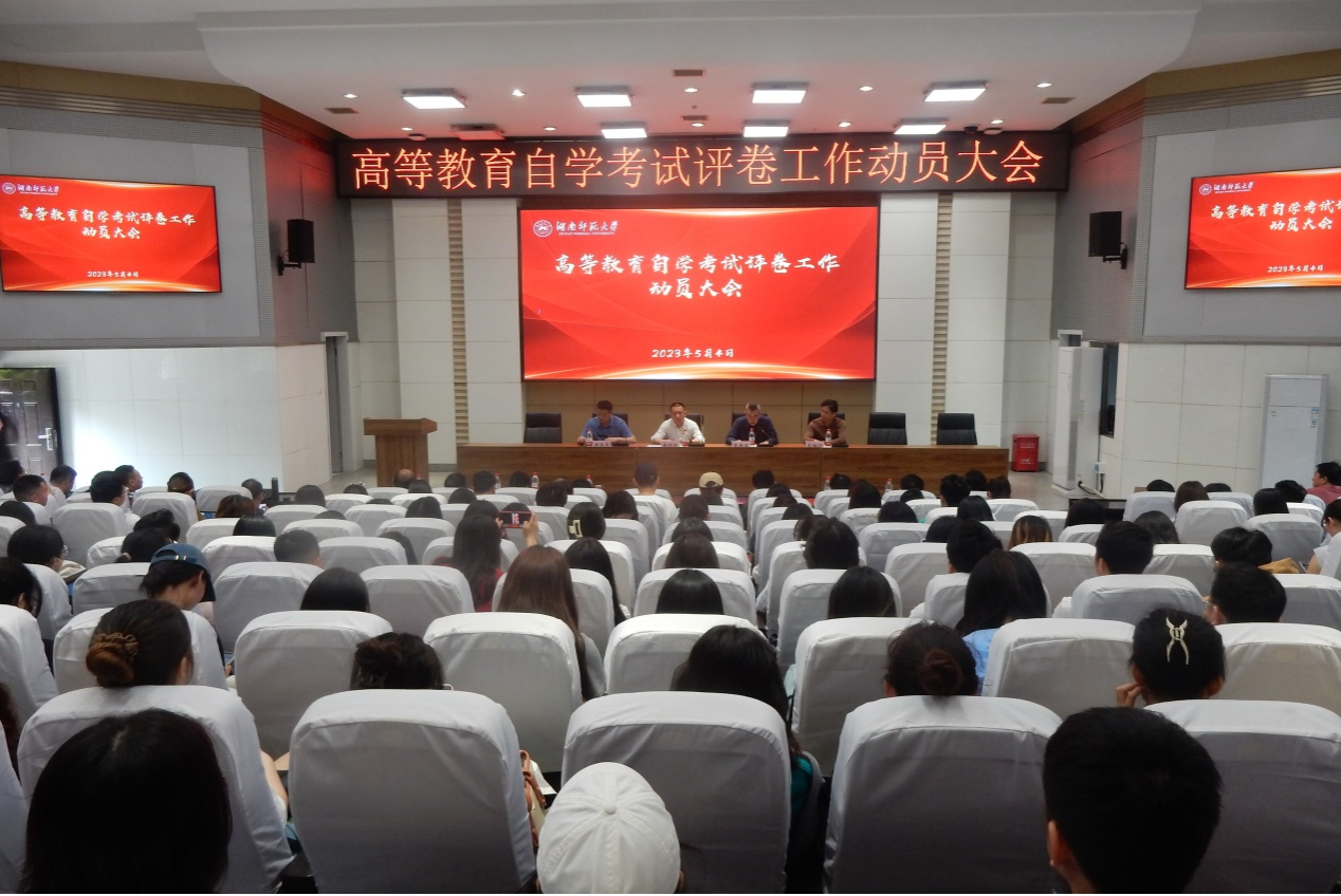 (供稿 继续教育学院)5月4日上午,湖南省高等教育自学考试2023年上半年试评卷工作动员会议在我校至善讲堂召开。湖南省教育考试院副院长康洪文、我校副校长蒋新苗出席会议。会议由我校继续教育学院院长钟荣华主持。