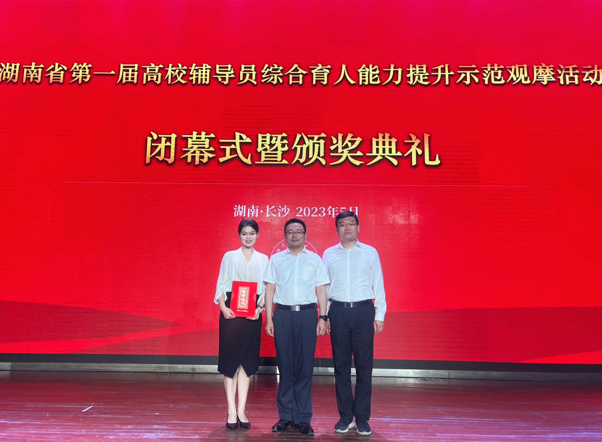 (通讯员 范增)5月22日至25日,湖南省第一届高校辅导员综合育人能力提升示范观摩活动在湖南农业大学举行。经过激烈角逐,我校商学院辅导员郭书畅老师以优异的表现荣获一等奖。