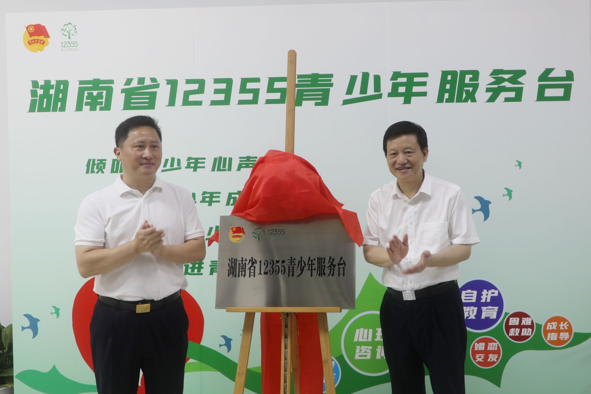 李志超和蒋洪新共同为湖南省12355青少年服务台揭牌,双方希望充分发挥各自优势,优化平台运行的体制机制、强化数据运营管理,携手服务青少年心理健康和法律咨询工作。