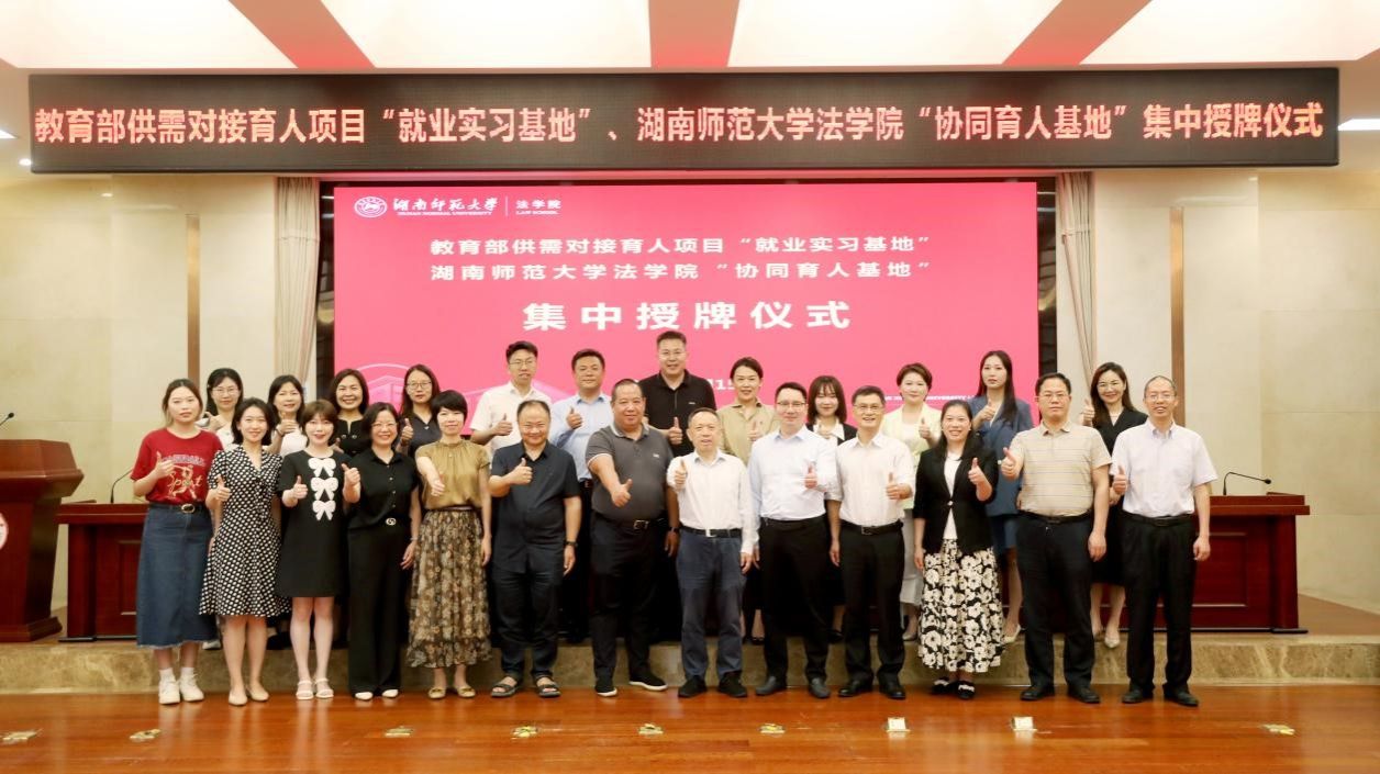 北京大成(长沙)律师事务所、北京盈科(深圳)律师事务所、上海兰迪(长沙)律师事务所、宁乡市人民法院、长沙市芙蓉区人民法院、北京市中闻(长沙)律师事务所、北京中伦文德(长沙)律师事务所、湖南弘一律师事务所、湖南天地人律师事务所、湖南金厚律师事务所、湖南师大知识产权运营有限公司等单位代表及法学院相关负责人参加授牌仪式。